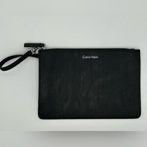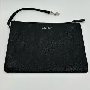 Sleek black leather clutch bag by Calvin Klein. Perfect for any occasion.