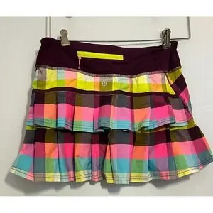 LULULEMON Pace Setter Skirt sea check plaid plum pink size 6