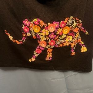 Chico's Black V-Neck Top with embroidered elephant size 3