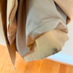 Stunning camel-colored trench coat from Swedish brand J. Lindeberg! This beautifully tailored coat features a classic trench style with modern Scandinavian design in the perfect neutral shade.
