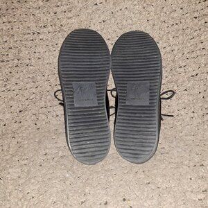 These sneakers feature a solid black color with a round toe shape and a zip closure.