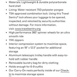 Quince 22” carry on. Tan. Never used but does have some handling marks.