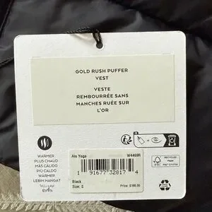 ALO Yoga NWT Women's Black Gold Rush Puffer Vest SZ S