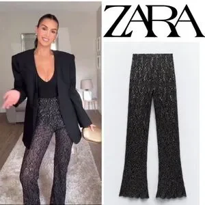 Zara Women's Elegant Black Lace Flare Pants