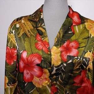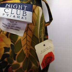 Vibrant tropical print satin pajama set by Night Club. New with tags. 100% polyester. Stretchy elastic waistband (stretches to about 20"). True to size.