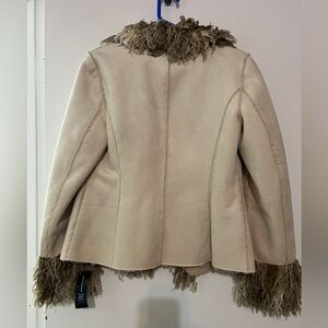Elegant NWT Sherpa jacket. Size Medium. Features beige and cream tones.