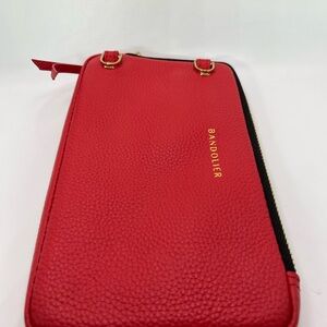 Bandolier Red Top Grain Leather Wallet Pouch with Gold Accents