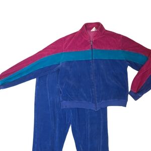 Vintage 1984 Jantzen Velour Track Suit Burgundy Blue Teal Medium