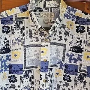 CROSSINGS, men's XL casual button-down shirt. Tropical print. EXCELLENT.