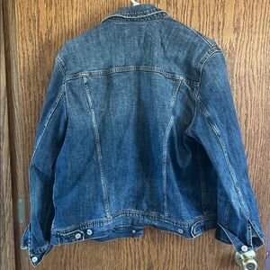 Classic denim jacket with button front. Features chest pockets and a timeless look.