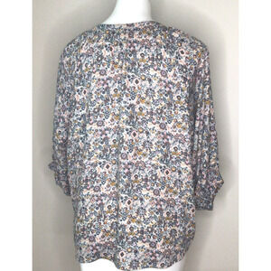Roan & Ryan Floral Print Black, PInk, Green V-Neck, Peasant Blouse Size L. Excellent pre-owned condition from a non smoking home.