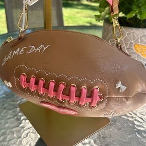 NWT- BETSY JOHNSON Football Gameday Crossbody Bag with Pink Strap