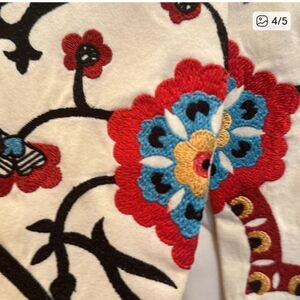 Beautiful floral embroidered jacket with vibrant colors. Perfect for adding a pop of color to any outfit.