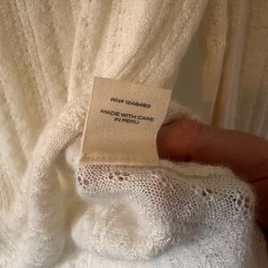 Inspired by vintage knitwear sets, the Minou Turtleneck—crafted from a dreamy blend of silk and baby alpaca—is an elevated staple that’s sure to see you through colder months. Its turtleneck and yoke are framed with a textured stitch that lends dimension, giving way to a linear open pointelle design on the subtly puffed sleeves and body. Hand-crocheted scallop detailing adorns the neck, wrists, and hem.