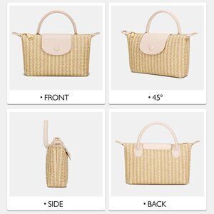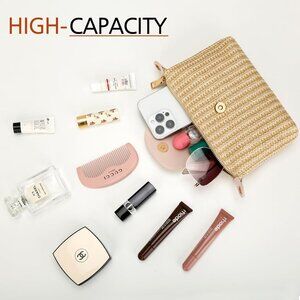 Features: Stylish straw woven design with a soft touch, this versatile crossbody bag can be worn as a shoulder bag, clutch, or handle bag thanks to its adjustable and detachable straps. Compact yet functional, it has a zippered main compartment, interior card slots, and enough space for your phone, wallet, cosmetics, and glasses. The woven style with leather accents gives it a chic, natural look perfect for summer outings.