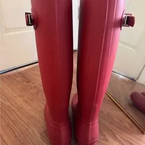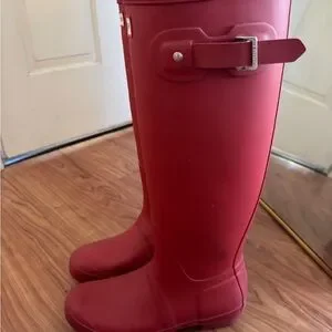 Stylish red Hunter boots. Perfect for winter and rain. Durable and comfortable.