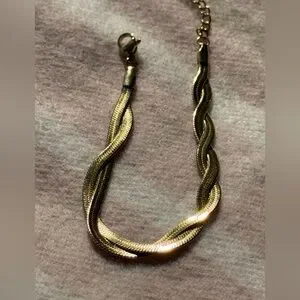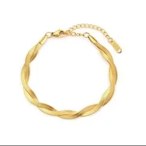 Braided New Herringbone Necklace Bracelet Gold 18K plated Set Stainless Steel