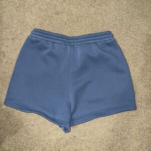 Cozy blue sweatshirt and shorts set. Features bold white logo. Perfect for casual wear. No stains or flaws.