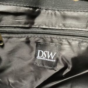 Black DSW canvas backpack with faux leather adjustable straps. Never been used. Nice deep interior. Comes from a smoke-free home.