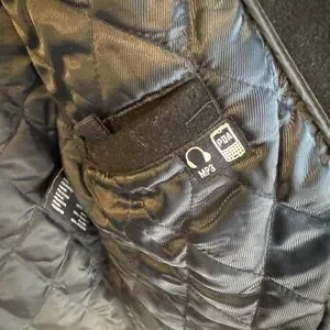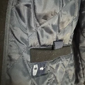 Men black dockers dress coat with lots of pockets inside and out. Zipper up front