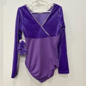Luxurious purple velvet dance leotard. It comes with a matching velvet scrunchie.