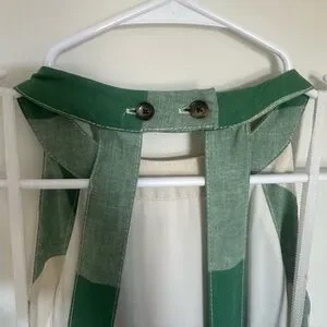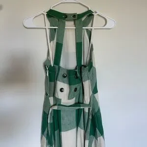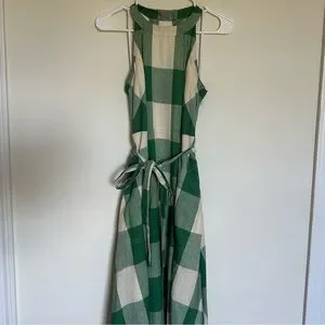 ANTHROPOLOGIE Maeve Greta Gingham Dress Size 6 Green Check Retro Linen Midi.