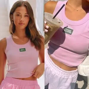 Daily Drills Logo Ribbed Tank in Pink. Size XS / S / Extra Small / Small. Features scoop neckline, cropped, ribbed knit fabrication, signature patch detailing on front. 52% cotton, 45% modal, 3% spandex. Excellent condition, no flaws.