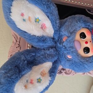 Authentic Cureplaneta Baby Three Lily Rabbit Town bunny. This is a confirmed blue bunny "Lele". Smells like blueberries. Moon and star tattoos on cheeks. Red moon on elastic band is removeable. Box and bag were opened to confirm ID however pull strip is still intact on top and bottom of box is taped sealed. Also comes with ID card.