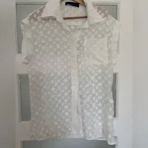 Chic sheer lace design. Button-down style. Perfect for layering.