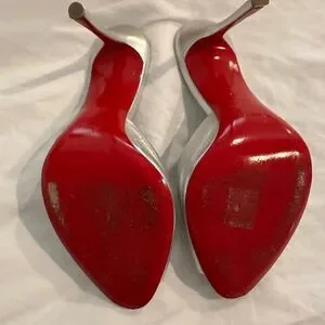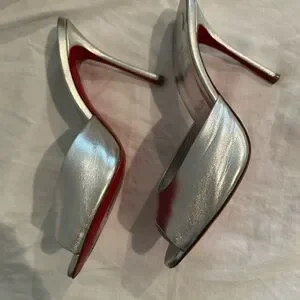 Step out in style with these elegant Christian Louboutin silver mules. Perfect for any occasion, these shoes offer both comfort and sophistication. They are sold out in stores. Great condition and worn a few times.