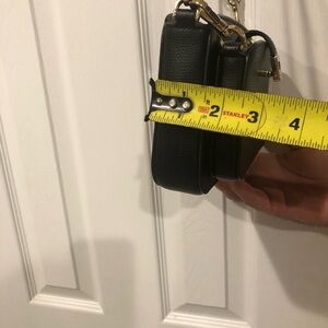 Chic black crossbody bag with gold hardware. Stylish and versatile for any outfit. The front pouch is perfect for a regular size cell phone. Excellent condition.