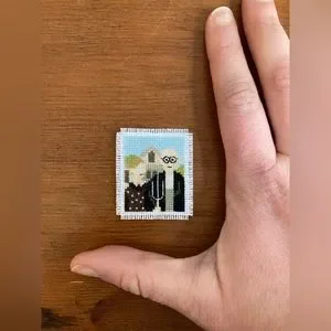 Grant Wood’s “American Gothic” in Mini Cross Stitch Art