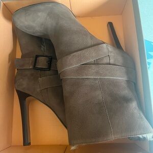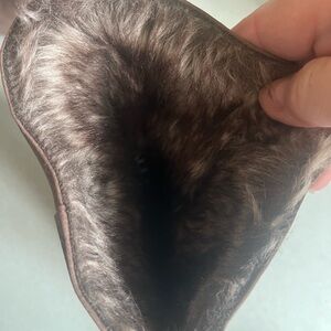 Stylish brown 4” heeled boots. Features faux fur trim. Perfect for a chic look. I basically just tried these out in the house they were too high for me size 10 faux fur lined . Leave up or fold down