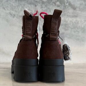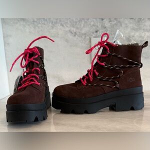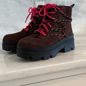 UGG Brisbane Lace Up Waterproof Suede Boots with Pink & Brown Laces • 10 • NWT