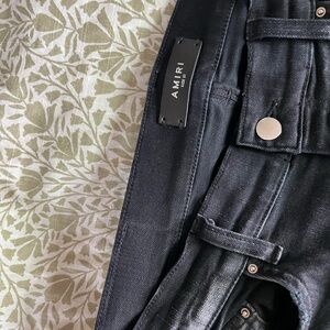Sleek black slim jeans with distressed details. Perfect for a modern look. Ideal for casual outings. AUTHENTIC used amiri jeans in good condition