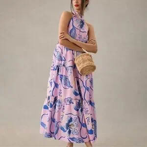 Anthro x Sarah Gordon tiered halter midi dress