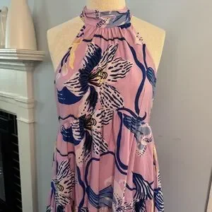Anthro x Sarah Gordon tiered halter midi dress in lavender lilac blue floral