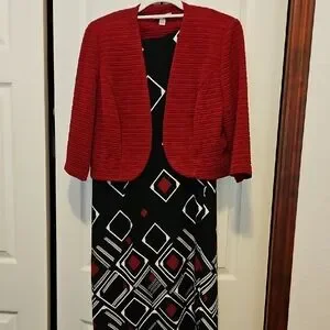 Elegant Red and Black Geometric Dress with Jacket NWOT/Great for Valentine's Day