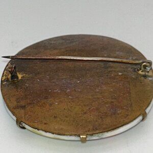 Antique Hand-Painted Porcelain Brooch With Pink Roses C-Clasp Gold-tone