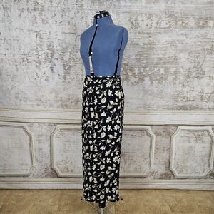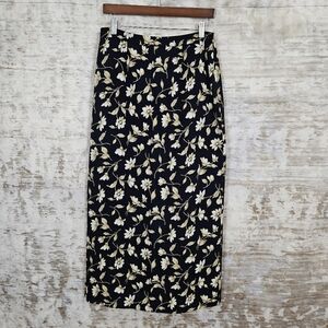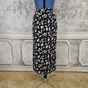 Vintage 1990s Silk Black Floral Maxi Skirt Column 90s Jones New York M Grunge