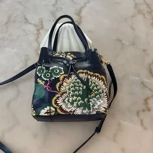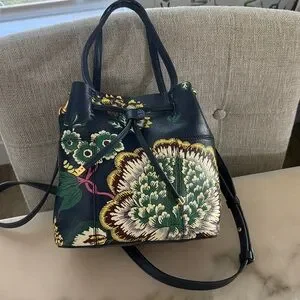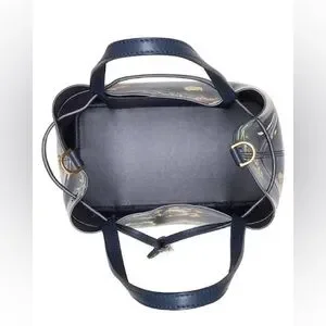 Tory Burch Block-T Printed Small Bucket Bag Navy Happy Times