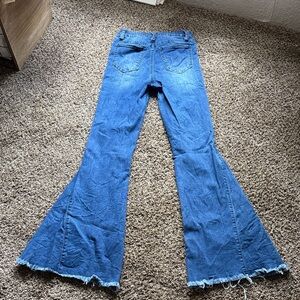 Elevate your wardrobe with these chic blue flare jeans. Perfect for a trendy, casual look.