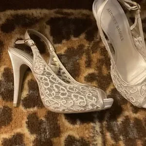 Audrey Brooke Cream Lace Peep-Toe Heels