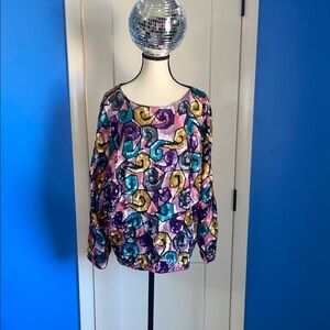 Vintage Eye-catching blouse with abstract swirl design and super trippy fun Psychedelic Sequin Top // Eclectic Handmade Features vibrant hues for a bold look. Perfect condition super trippy!