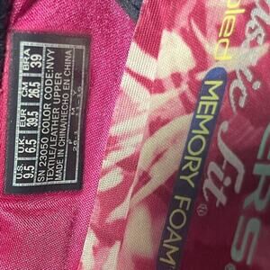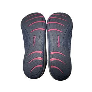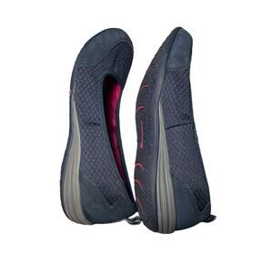 Details: Skechers Classic Fit, navy mesh + suede upper, Air-Cooled Memory Foam, pink lining, slip-on style, size 9.5 US, EUC.