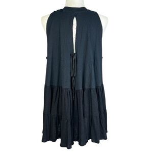 New Free People Black Back Tie Cut-Out Babydoll Tunic Top Oversized Boho
