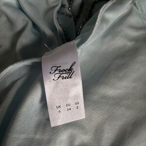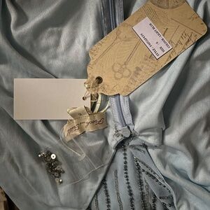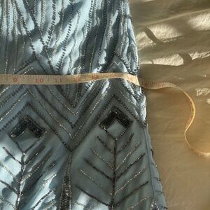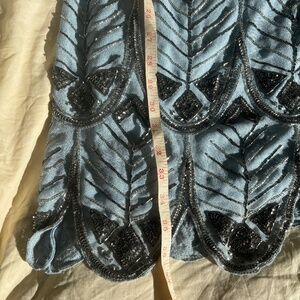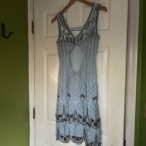 Blue flapper style dress. Beautifully weighted with heavy silver beading. Layers for a swishy skirt. US 2 UK 6