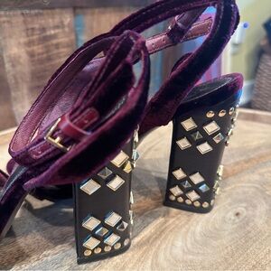 Tory Burch Rich Maroon Velvet Gold Studded Block Heels. Luxurious. U.S. 7.5