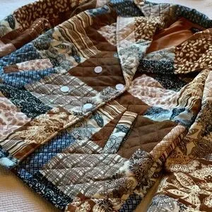 Elevate your style with the Patchwork Brown Jacket. This unique piece features a blend of brown tones, perfect for adding a touch of sophistication to any outfit.