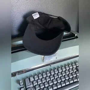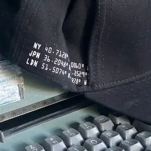 Stylish black cap featuring a unique coordinates design in white.